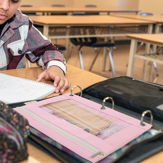 3 Ring Pencil Pouch Case for Binder, Zipper Pencil Pouches for Girls Boys, Clear Window Pencil Bag,Pencil Case with Smooth Zipper