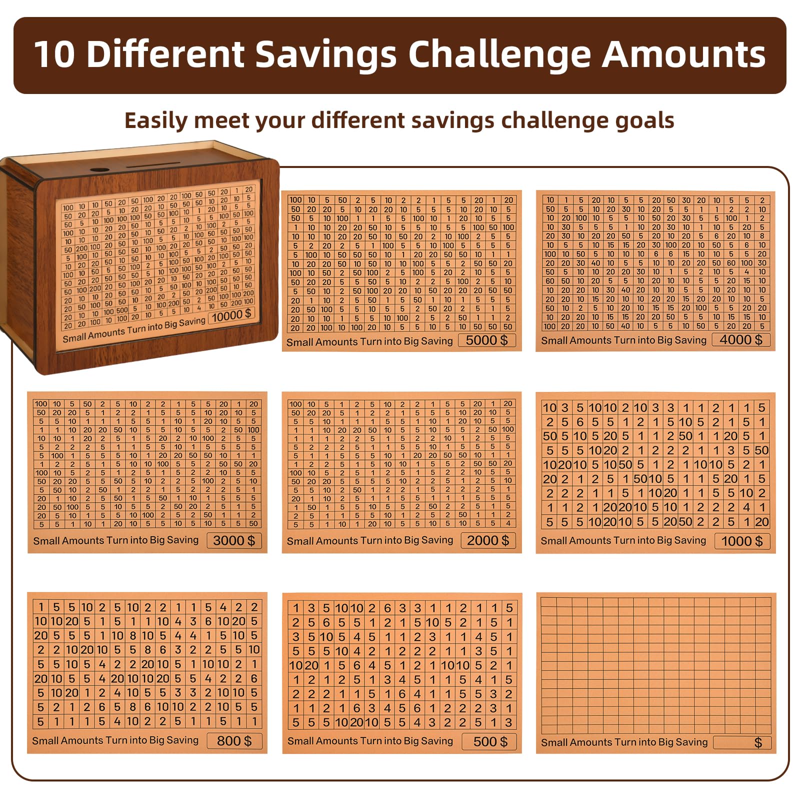 10000 Wooden Money Saving Challenge Box Cash Vault Piggy Bank for Adults Savings Goals Smash Box Saver