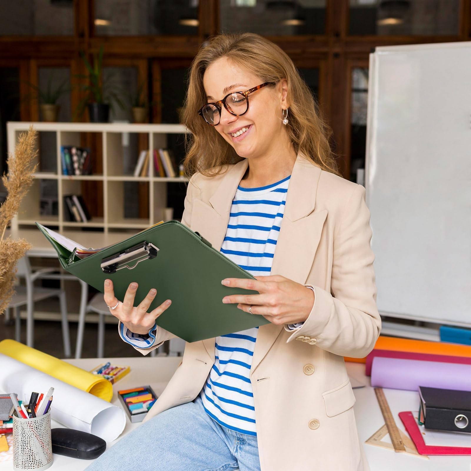 - Easy to carry: SKYDUE letter-sized clipboard binder is smaller, lighter, and more convenient to carry compared to an A4-sized binder, and fits most school bags and briefcases. A letter-size 26-page notepad for note-taking and to-do list