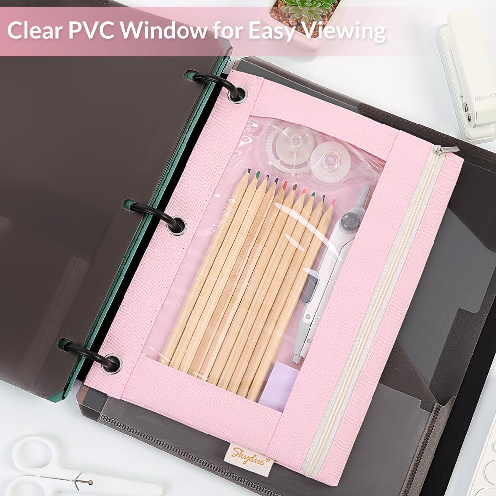 3 Ring Pencil Pouch Case for Binder, Zipper Pencil Pouches for Girls Boys, Clear Window Pencil Bag,Pencil Case with Smooth Zipper