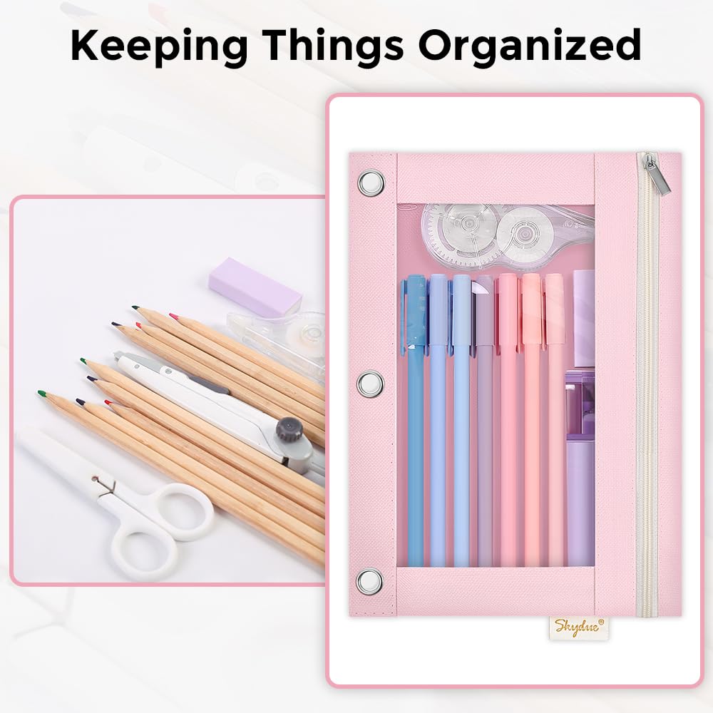 - [3-Ring Pencil Pouch] The SKYDUE pencil pouch is designed with a 3-hole punch, fitting all standard 3-ring binders perfectly. A must-have accessory for organizing your writing tools, keeping everything neat and accessible within your binder.