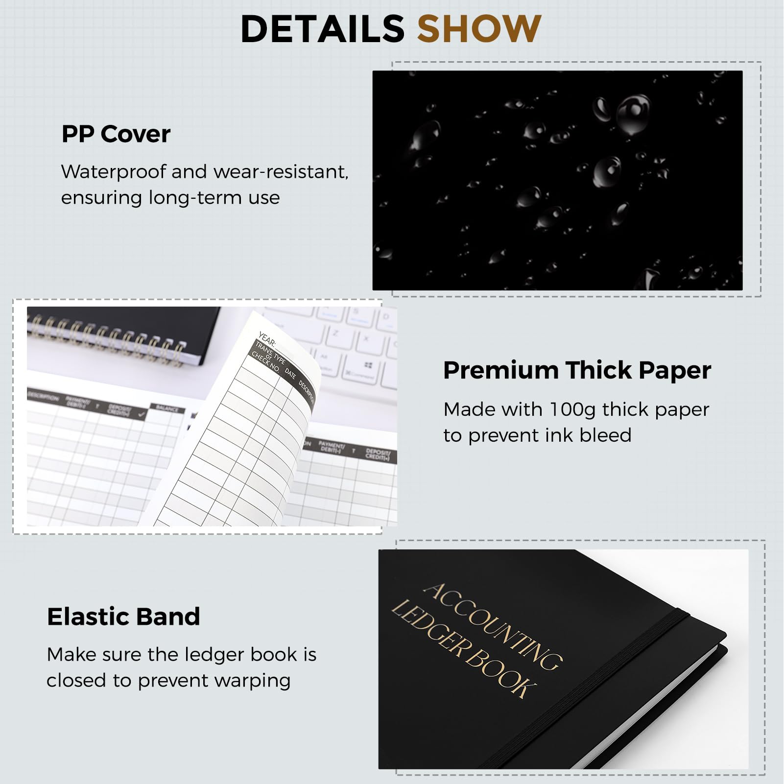 - Premium Quality: This ledger book is built for durability and is a small business essential. It uses 100g thick paper that prevents ink bleed-through. The waterproof PP cover effectively protects the inner pages and prevents daily wear and t