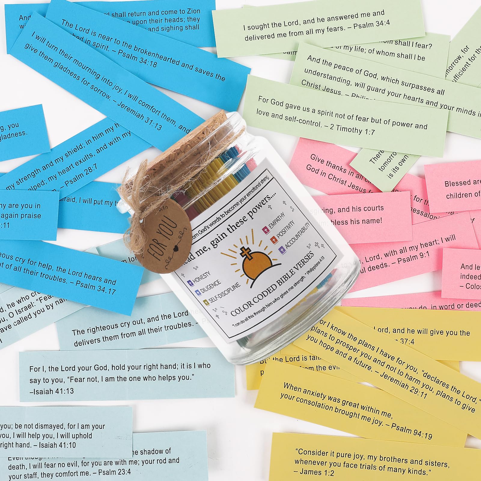 - Meaningful Gift for Christians: This Bible accessories includes 6 different colored strips of paper and 90 carefully selected verses, making it a meaningful Bible study supply. These verses are contained in a corked glass jar, a thoughtful gift for Christians.