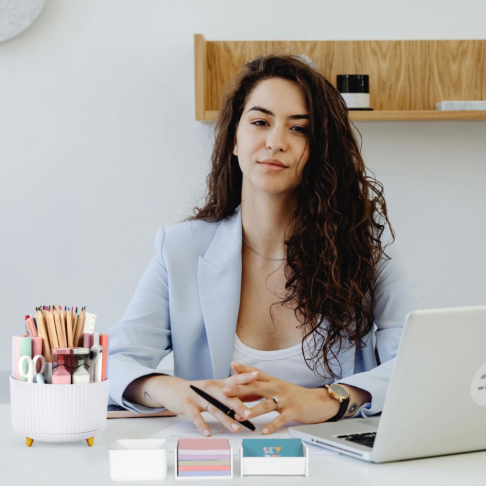 - Premium Materials and Workmanship: The four-piece desktop set is made from sturdy and reliable plastic, all in a uniform white color with a smooth surface and no burrs. The pen holder rotates smoothly without any wobbling.
