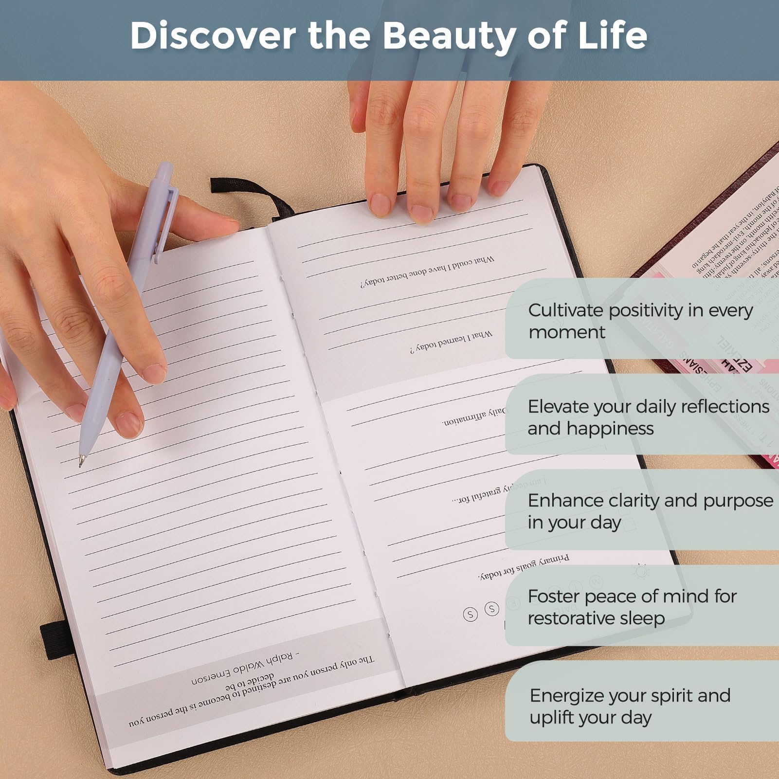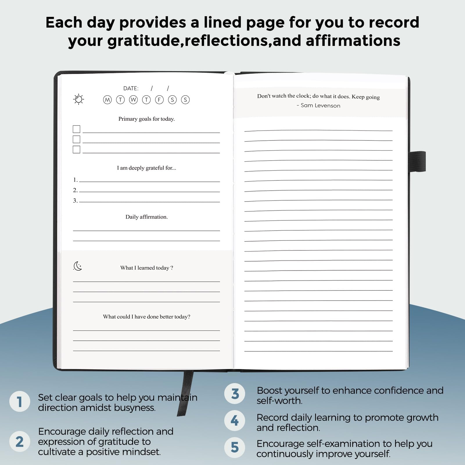 - Compact and Portable: The journal's sleek and portable size makes it easy to carry with you wherever you go. Whether at home, in the office, or on the move, you can easily integrate gratitude practice into your daily routine, promoting a positive mindset throughout your day.