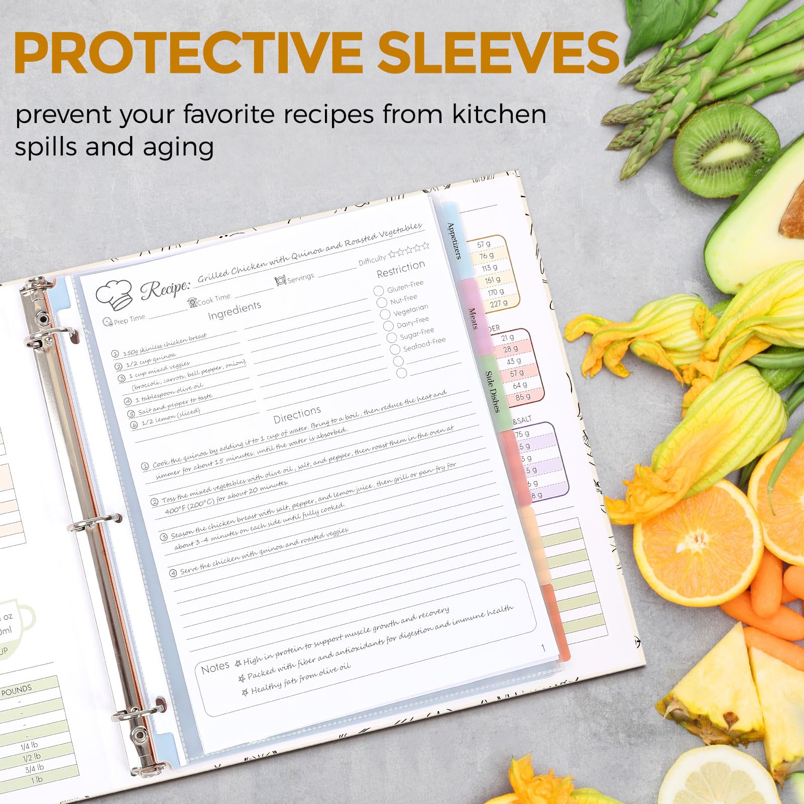 - Durable Design – With a sturdy cover and premium plastic sleeves, this recipe book binder protects your cherished recipes from kitchen splatters, spills, and stains, ensuring they remain in pristine condition for years to come.