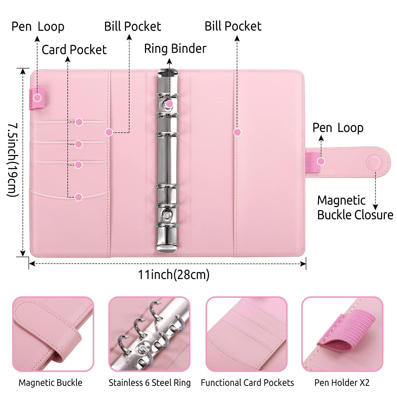- Easy to Carry: A6 Binder Budget Envelopes System fits in your handbag, backpack,suitcase or desk; A6 ring binder suitable for all standard A6 size inner pages.
