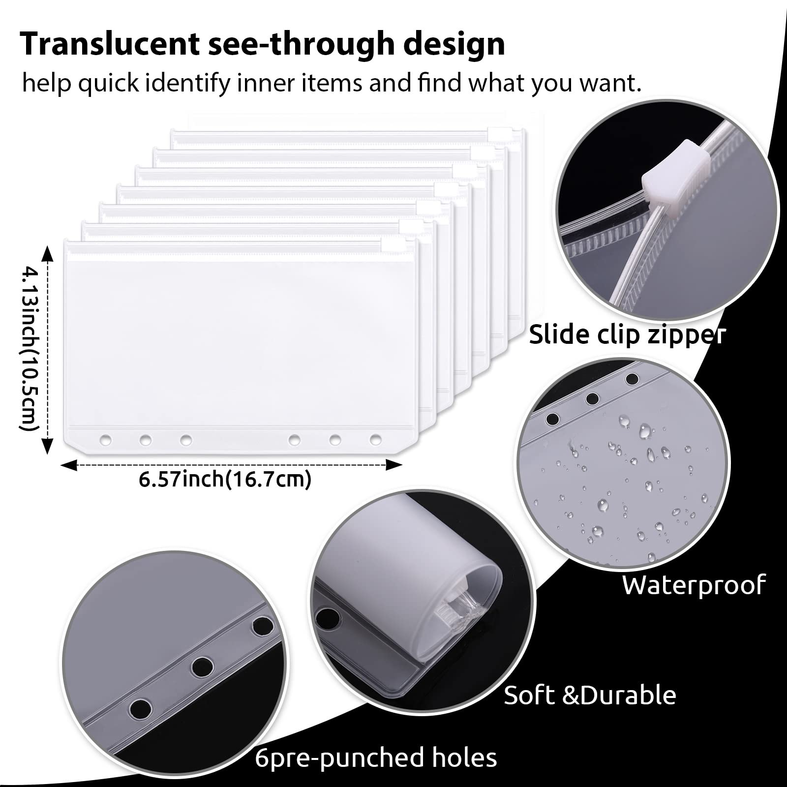 - Binder Pockets:8PCS A6 zipper cash envelope made from durable material. It is resists tearing and acid-free which can protect your items from water and dust.As cash envelopes is convenient for storing money, cards, stamps, tickets, pens.