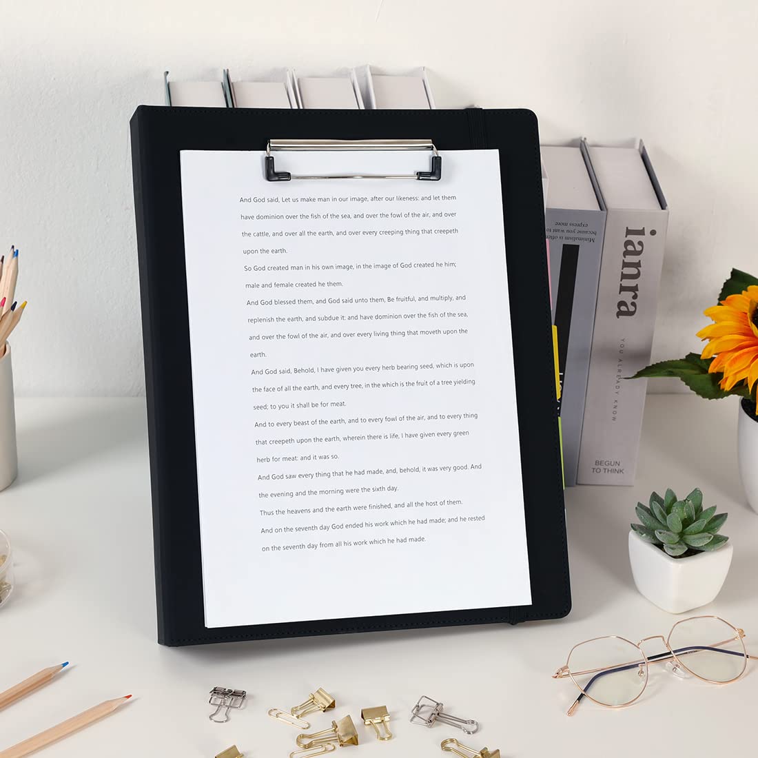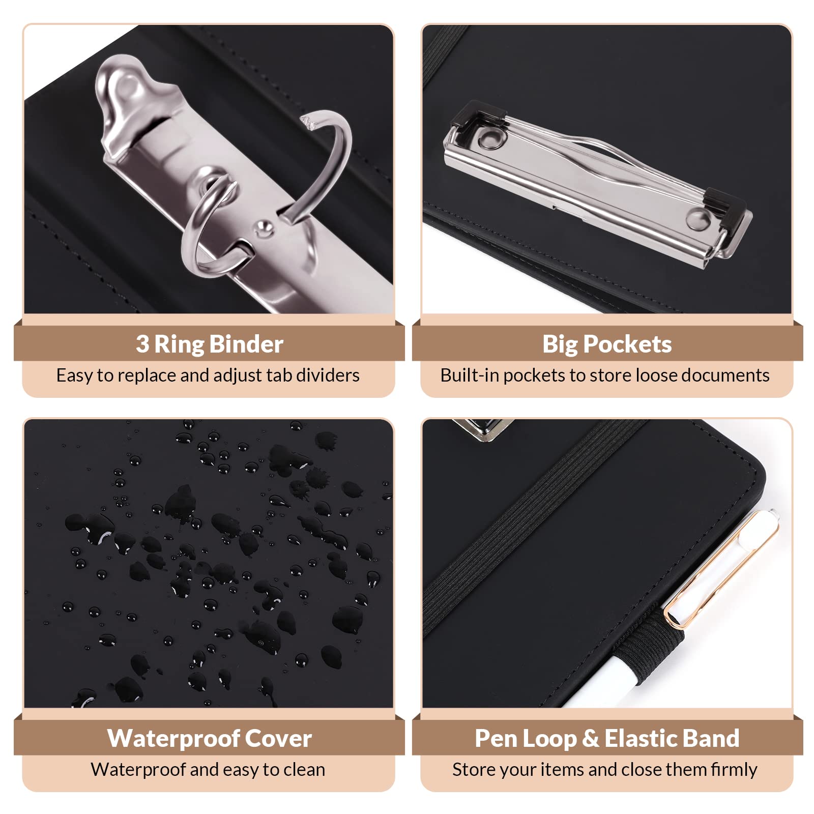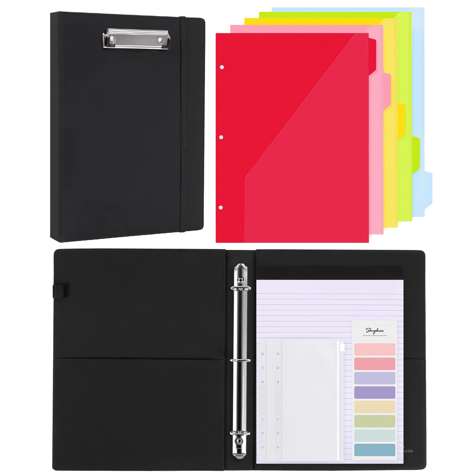 SKYDUE Clipboard Folio with Refillable Notepad, 13.2" × 10.2" PU Clipboard Folder Includes 5 Dividers with 10 Pockets, Labels, 3-Ring Binder Great for School Office