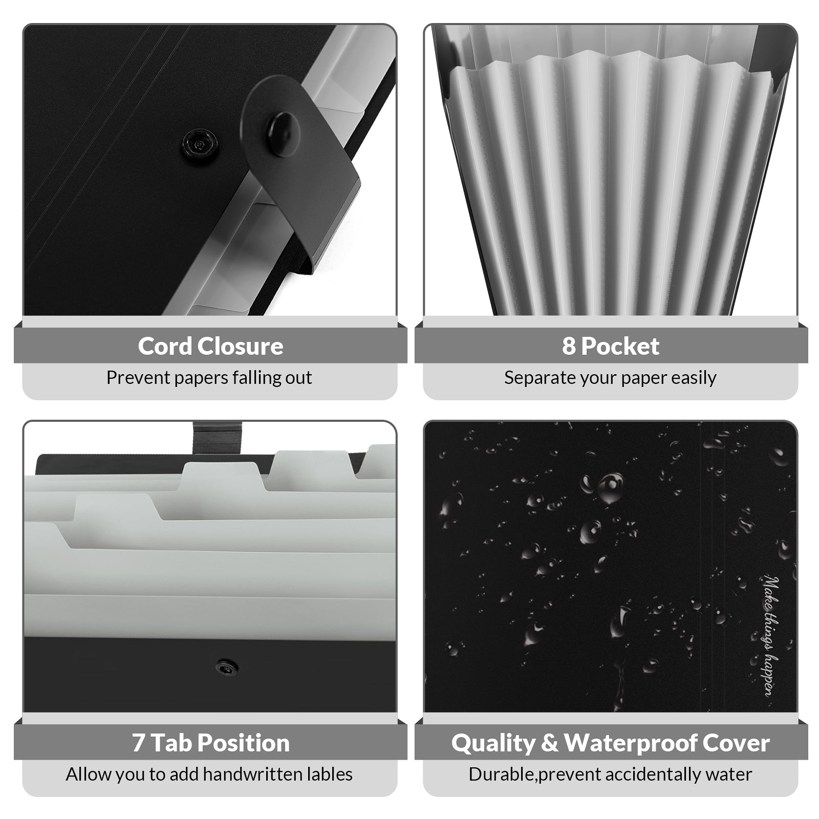 - FOLDERS WITH POCKETS:Expanding file folder with 8 expandable pockets and 7 tab positions for organized