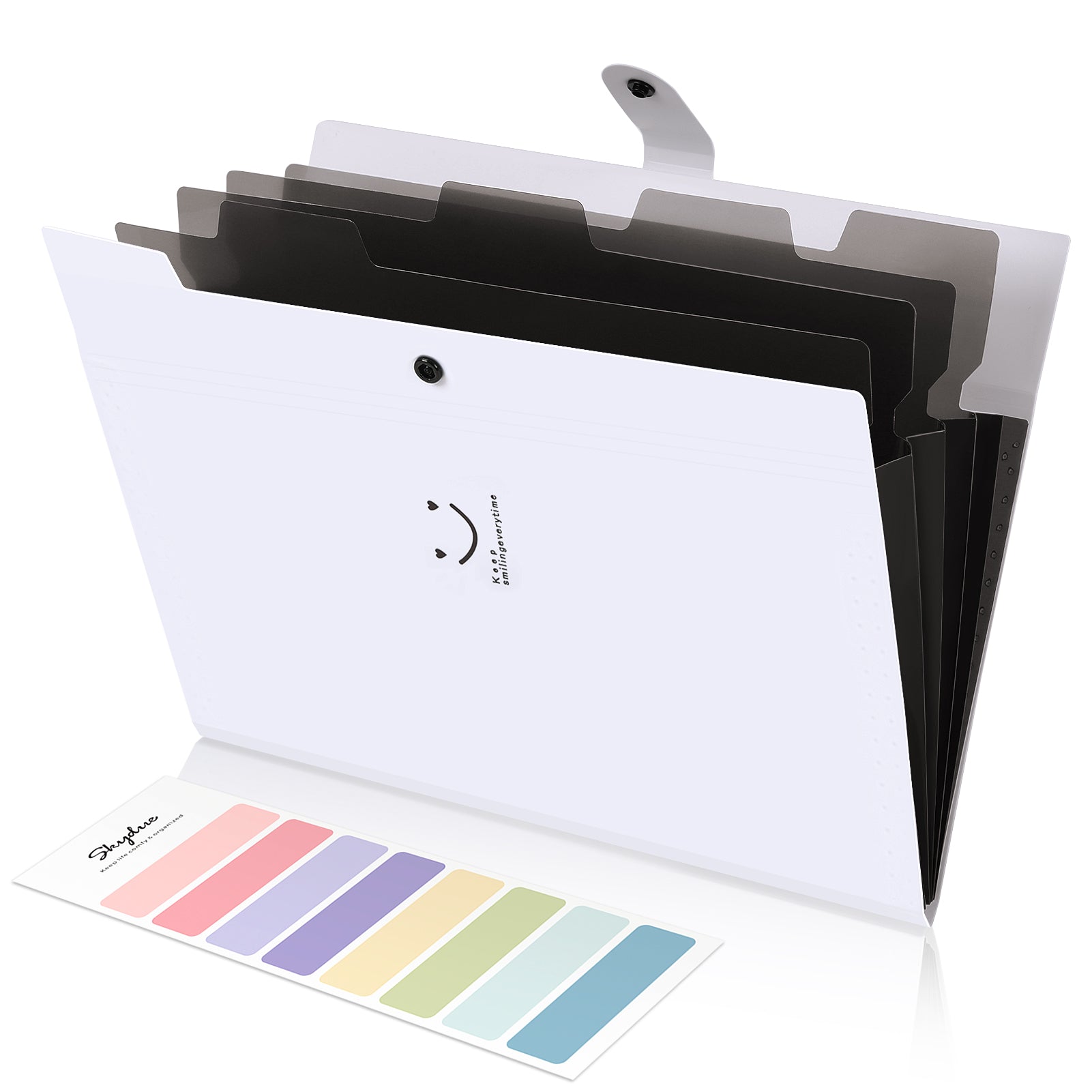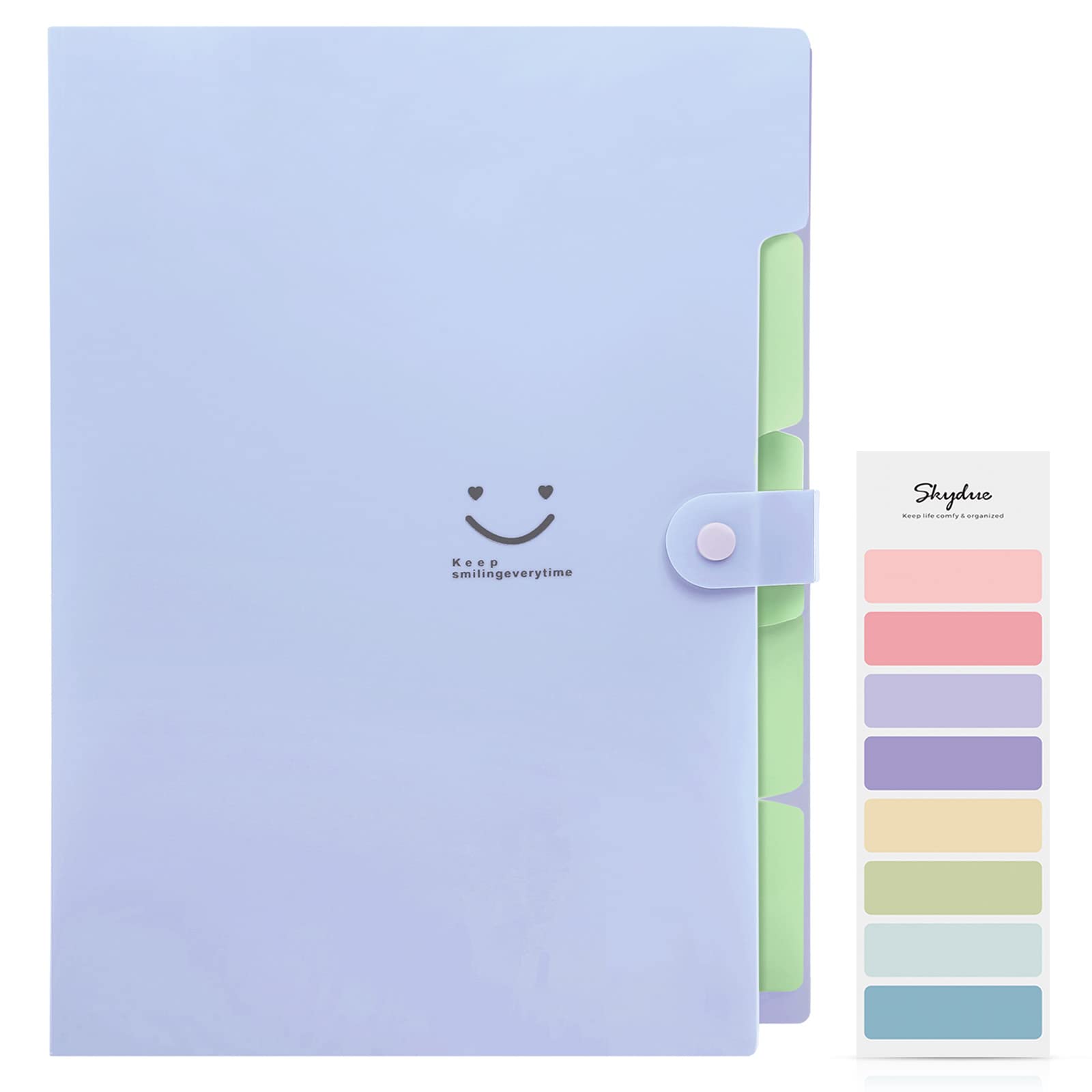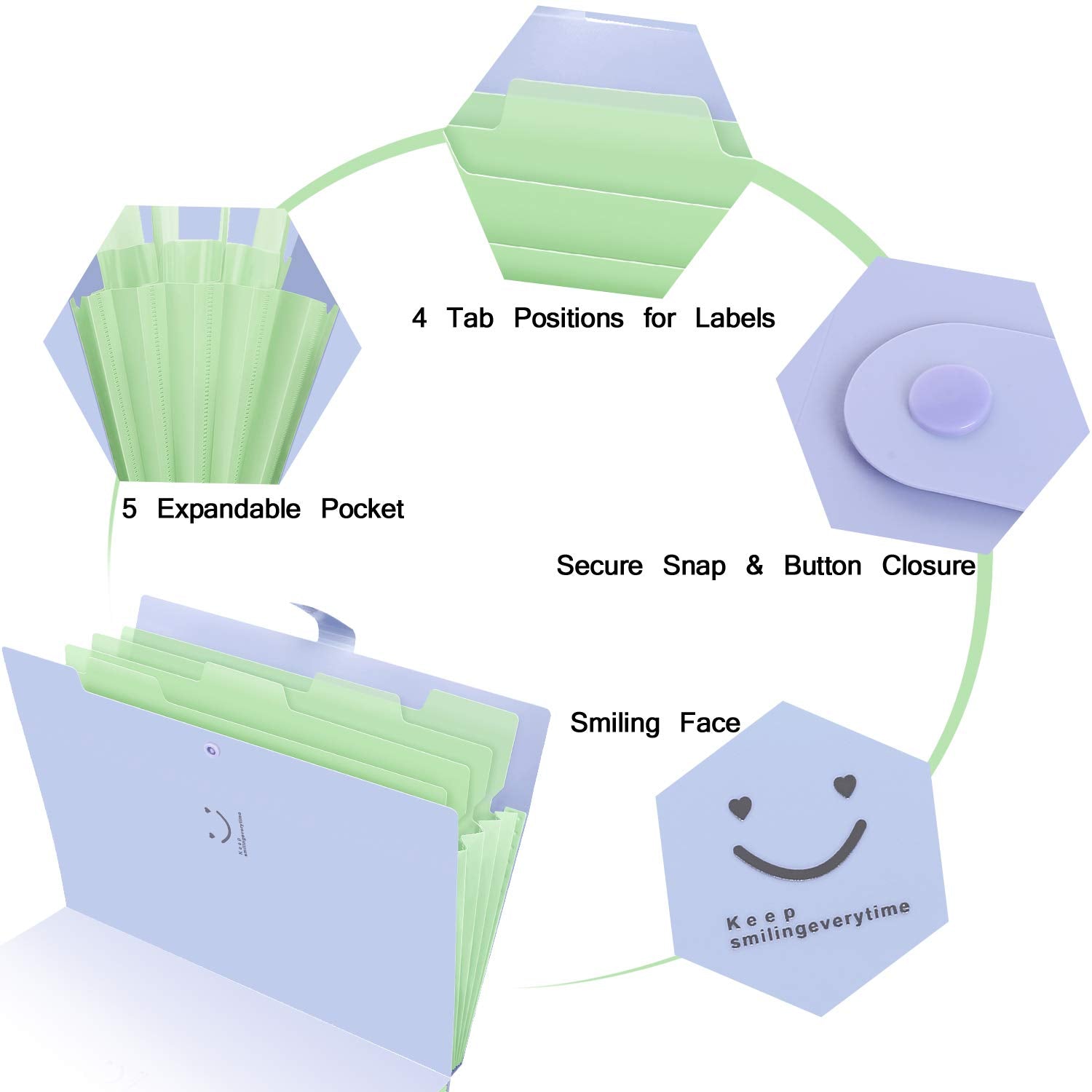 - Cute Solid Color Design. Expanding file folder has 5 expandable pockets. And tab positions for labels, organized