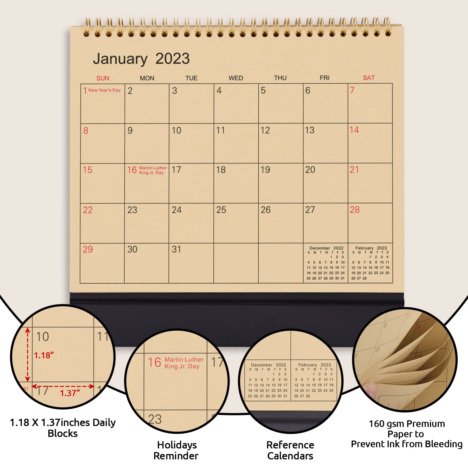 - MONTHLY CALENDAR: Desk calendar 2023 has past and future month dates, 1.37" x 1.18" large & ruled daily blocks for personal notes to meet your monthly plan or daily schedule. Each month's page reverse side also has a To-Do List & Notes to help you to plan smart and manage your time effectively.