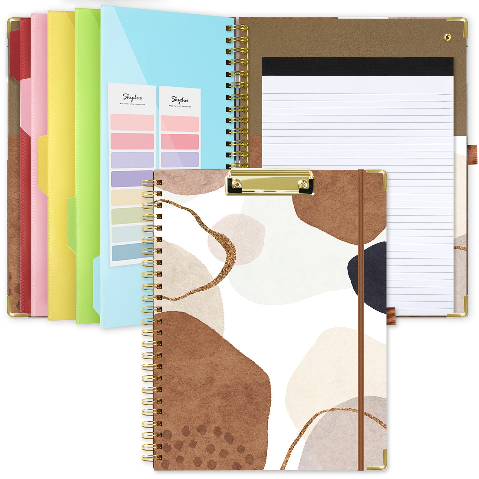 SKYDUE Spiral Clipboard Folio with Notepad and Pocket, 13.2" × 10.2" Clipboard Folder Includes 5 Dividers with 10 Pockets, Labels, Hardcover Clipfolio Design Fit for School Office